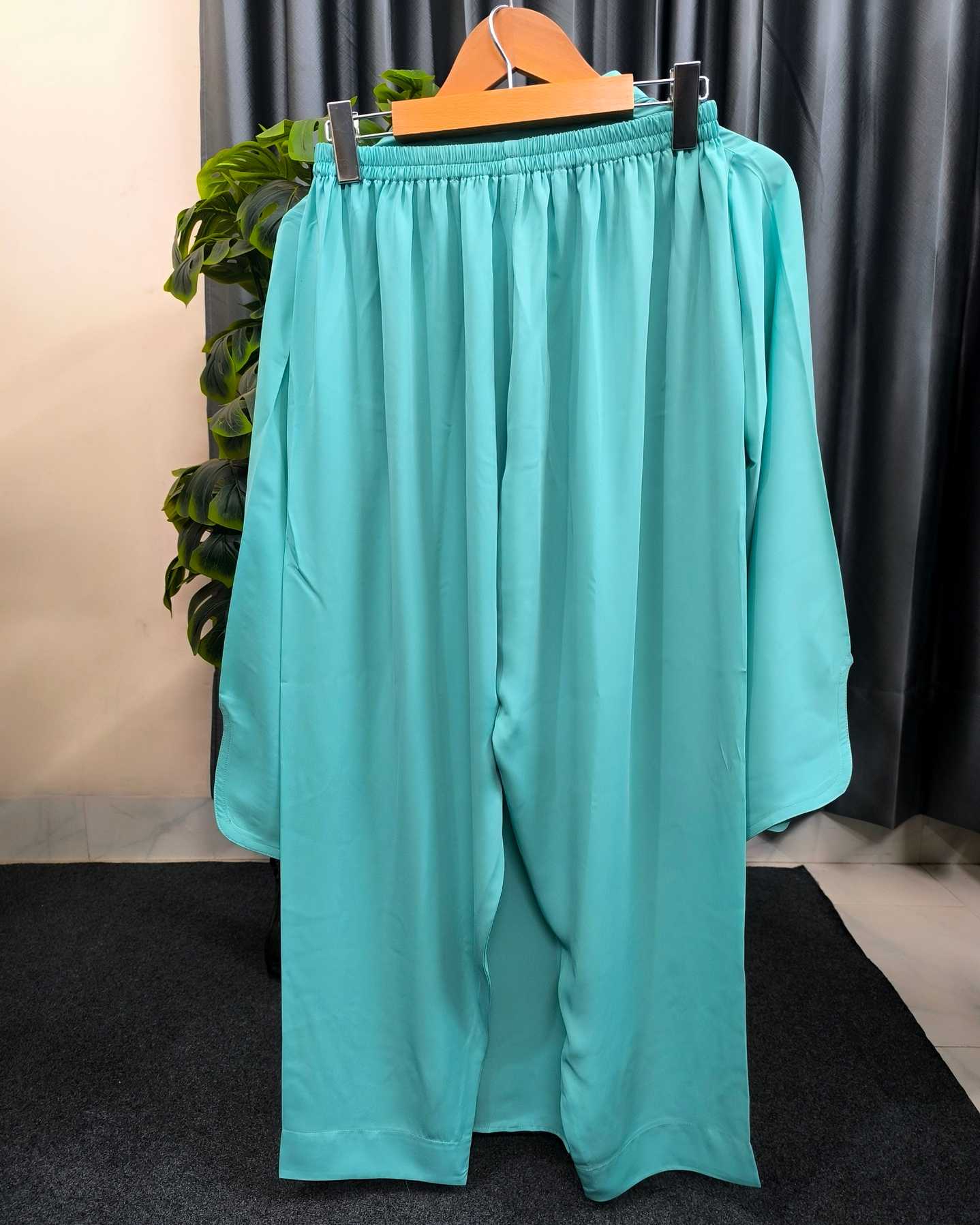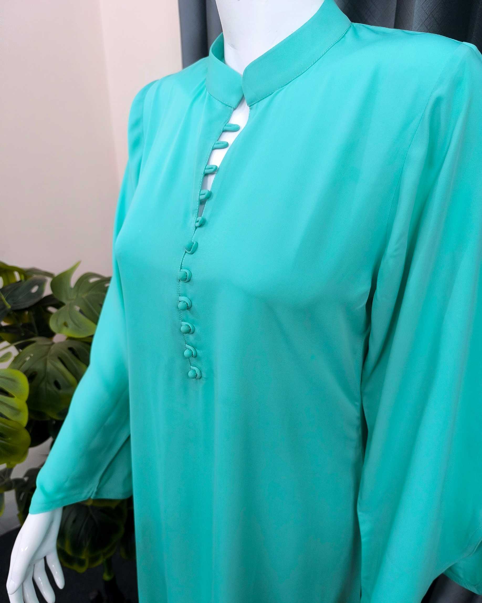✔ Solid Elegant Color – রিফ্রেশিং টারকোয়েজ টোন যা লুকে আনে স্নিগ্ধতা