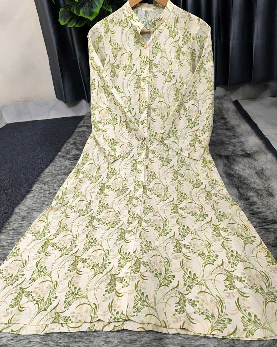 ✔ Elegant Leafy Print – Cream base-এর উপর Green tone-এর সফট ফ্লোরাল/লিফি প্রিন্ট, খুবই ক্লাসি ও সুতিং লুক