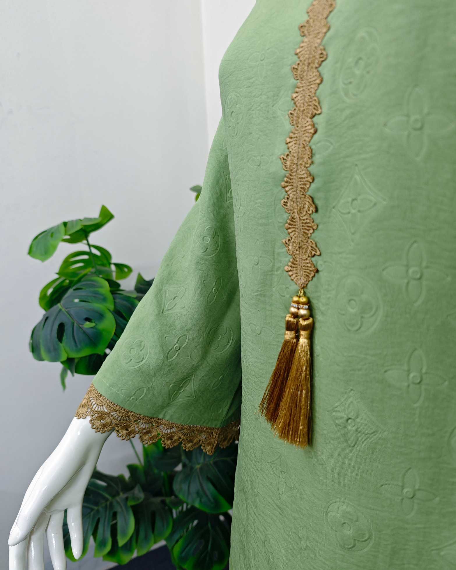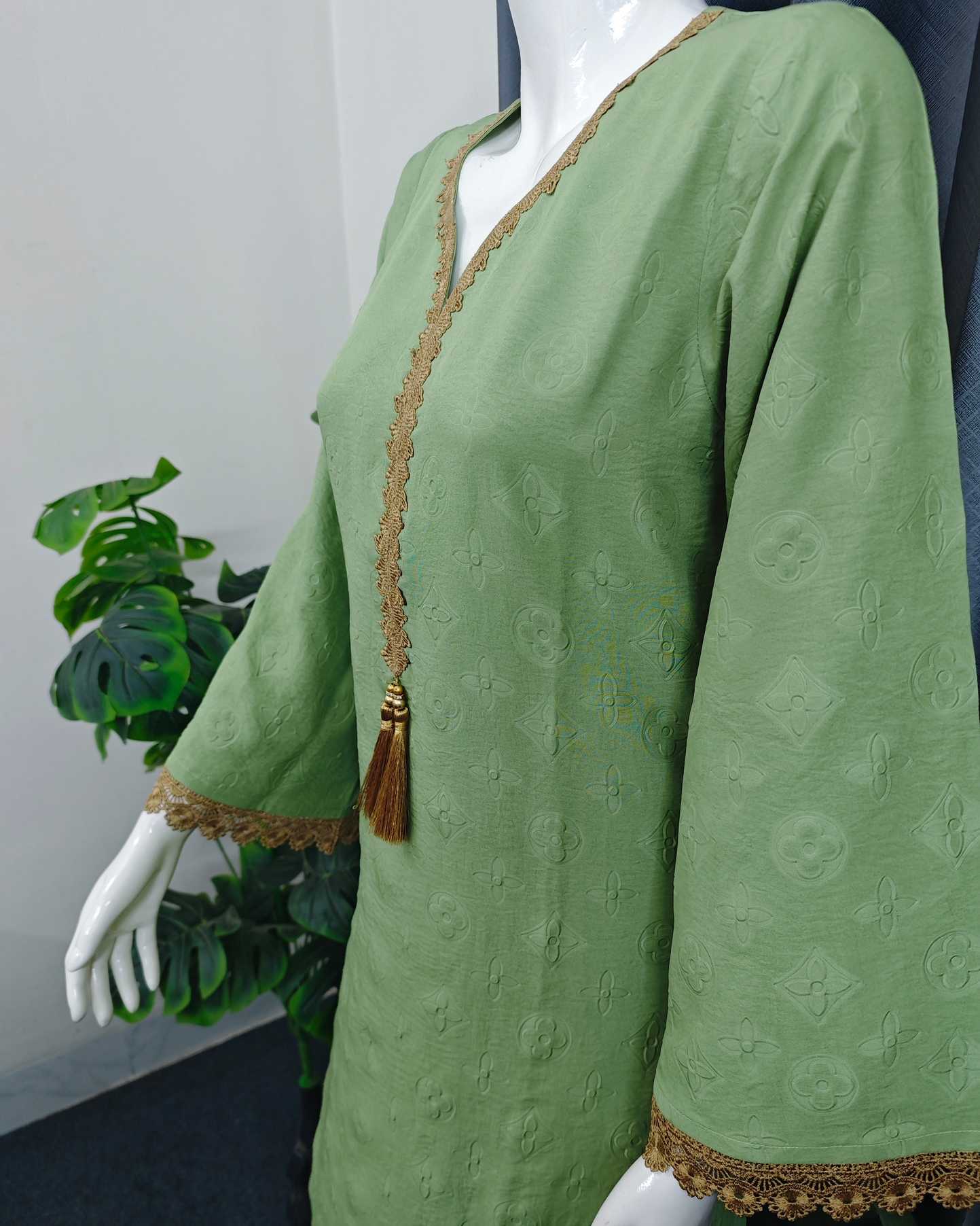 ✔ Stylish Details – neckline-এ সুন্দর lace finishing ও tassel detail, যা look-কে আরো premium করে