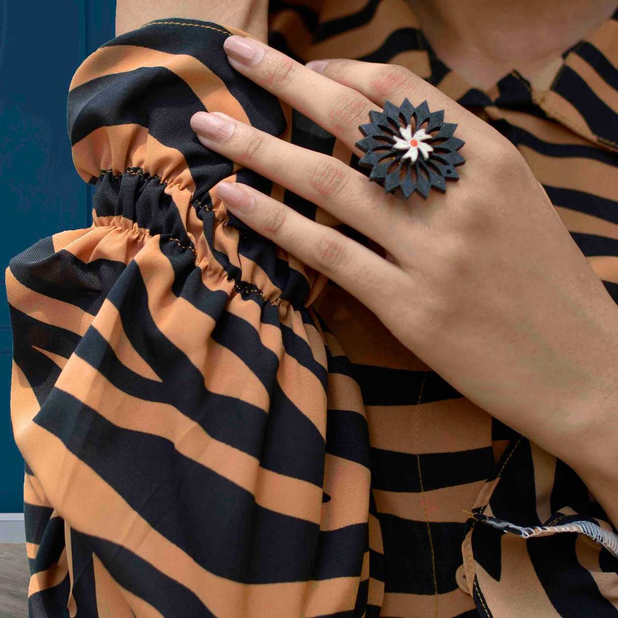 Pattern: Premium black & beige floral embossed print (Likely a typo, should be Tiger/Zebra Print)